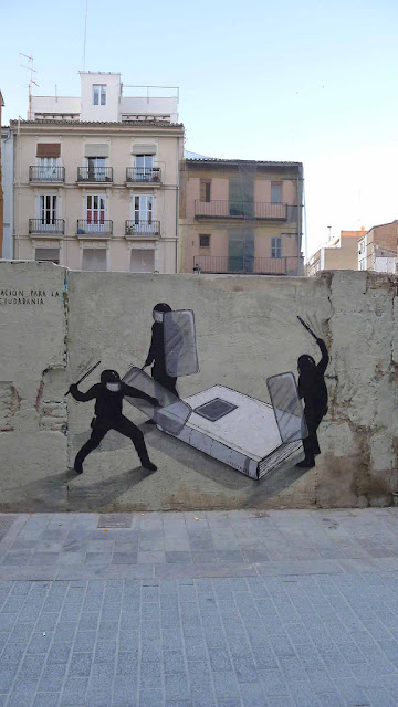 Street Art SuperHero Escif decided to react with this brand new mural titled “Educación para la ciudadania” that just appeared on the streets of Valencia.