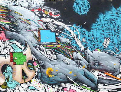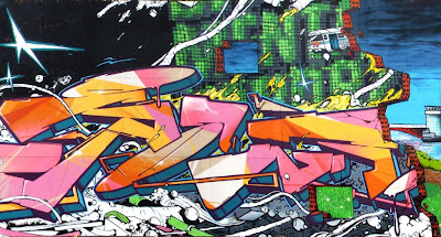 This amazing mural features works by Blo, Bom.K, Brusk, Dran, Gris, Jaw, Kan and Sowat