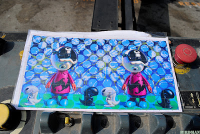 Sometime we wonder how Birdman manages to be everywhere and never miss an event in LA, we don’t have an answer but we have some very nice shots he just sent us from the newest Ron English mural for the LAFreewalls project curated by JetSetGraffiti.