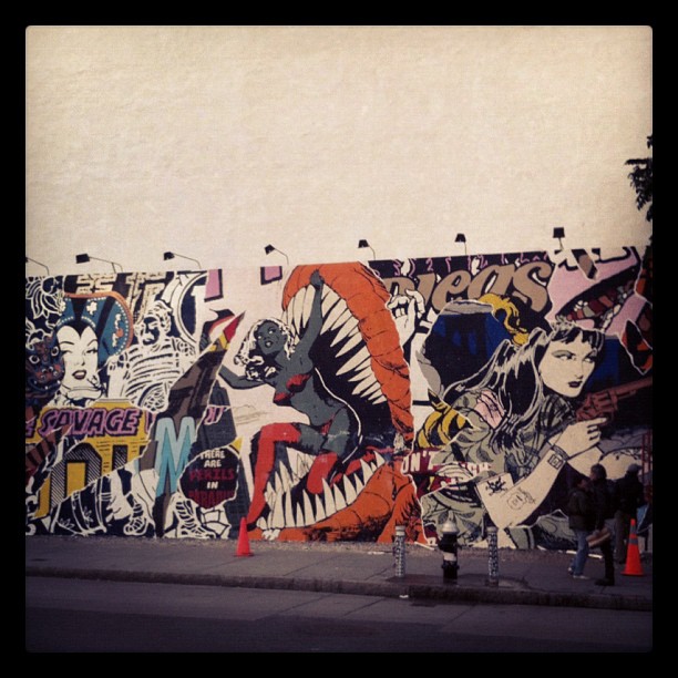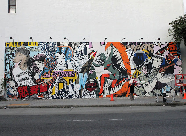 Say goodbye to JR’s mural which was up on the Bowery and Houston Mural for four months (covered), and hello to Faile new colourful wheat-paste that has freshly been installed this afternoon.