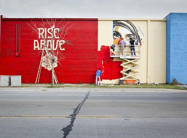 Shepard Fairey and the Obey Crew are in Dallas where they been hard at work on this brand new mural for the past three days.