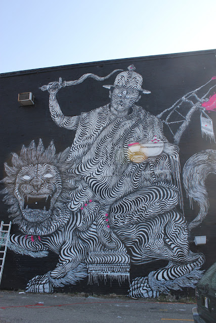 The Italian artist is showing a wonderful use of lines in this mural depicting a warrior riding his lion.