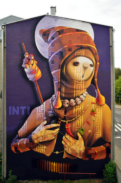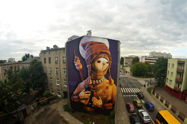 While you discovered some progress shots earlier this week (featured), INTI has now finished his new mural on the streets of Lodz, Poland.