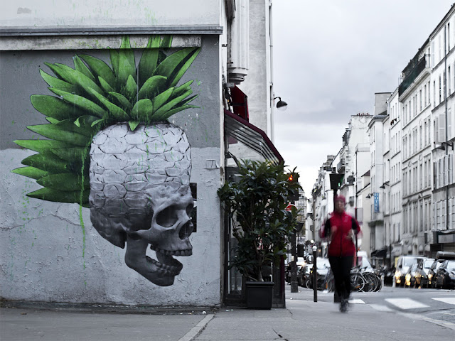 The Parisian artist just completed this sweet new mural entitled “Piña Colada” which can be seen somewhere around the streets of Paris, France.