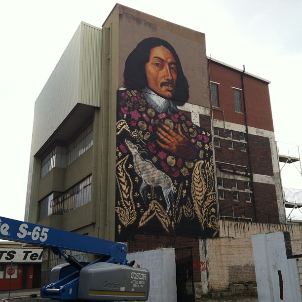 He teamed up with Freddy Sam to paint this large scale collaboration somewhere on the streets of Johannesburg.