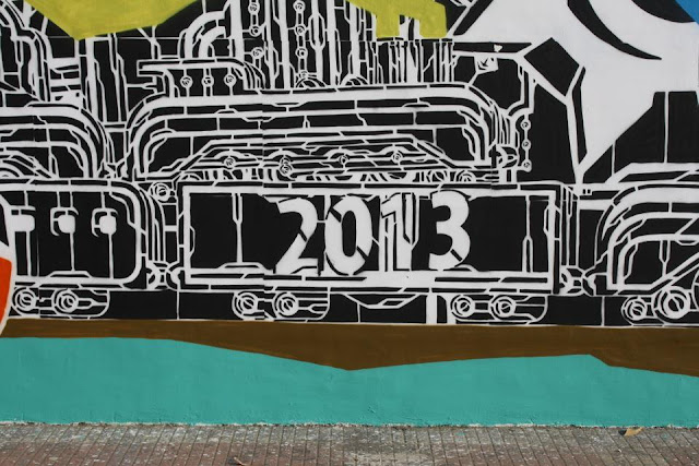 As usual with the Polish artist and his distinct machinery looking aesthetic, this new mural contains a great amount of detail, patterns, and strong line work.