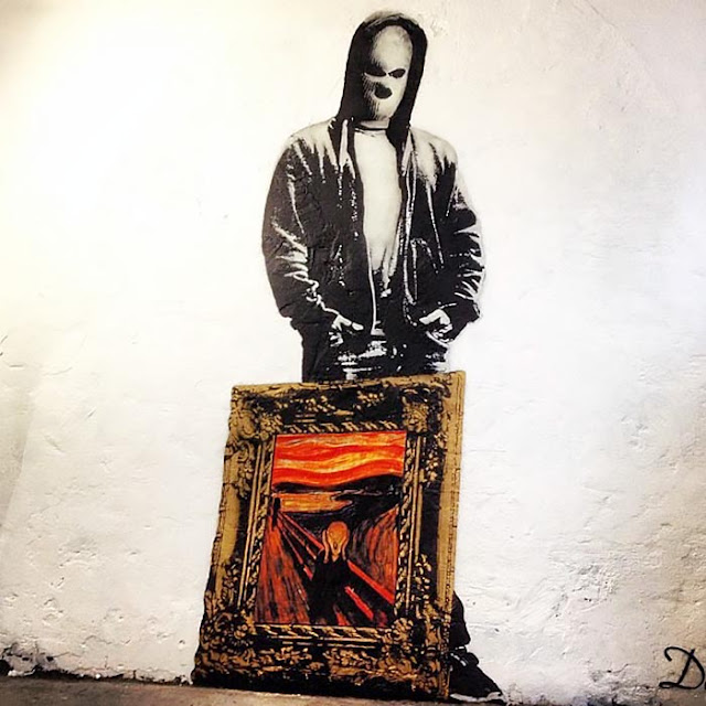 The Norwegian street artist stenciled this large-scale version of his signature “Protester” image which he released, earlier this year, as a screenprint. He also dropped another quick street piece for the local residents to enjoy.