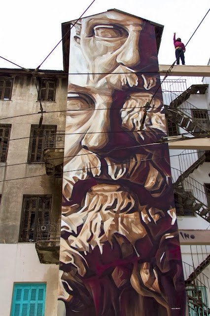 Entitled “System Of A Fraud”, the talented greek artist painted this massive portrait of Solon the lawmaker. Solon was an Athenian statesman, lawmaker, and poet. He is remembered particularly for his efforts to legislate against political, economic, and moral decline in archaic Athens