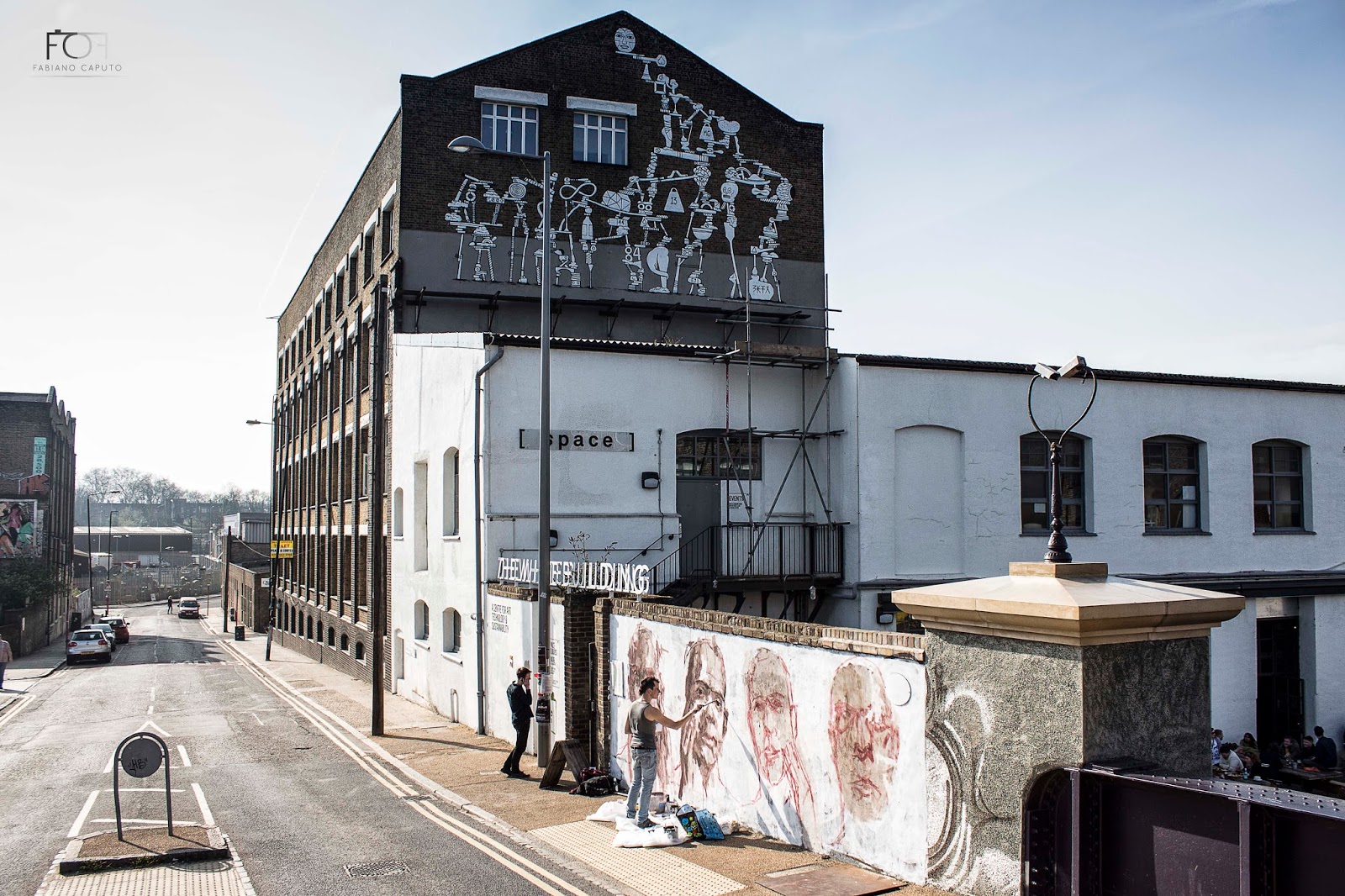 Borondo is still in London where he spent a few hours working on this new mural in the district of Hackney, East London.
