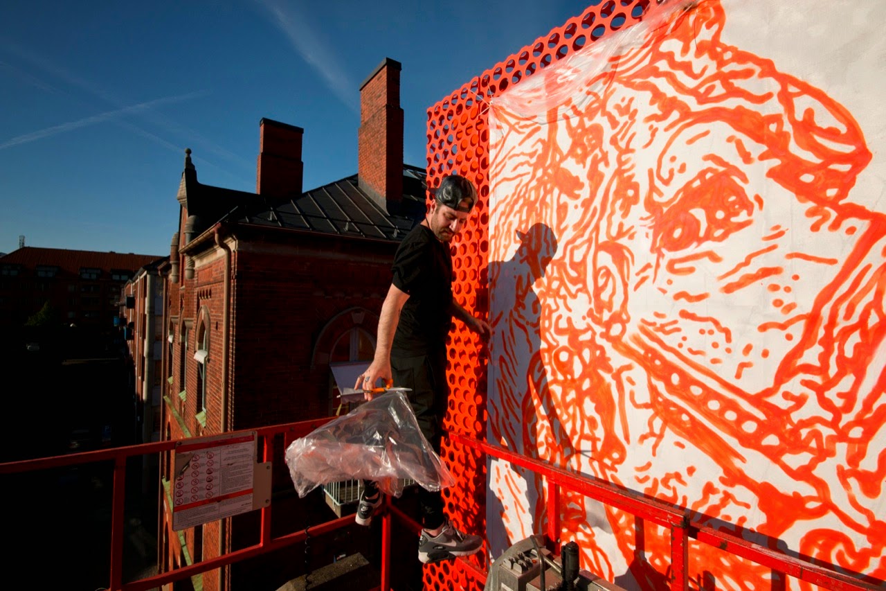 Last seen in London last March for their exhibition at StolenSpace Gallery (covered), Cyrcle are now back in Europe where they just wrapped up this new piece on the streets of Malmö, Sweden as part of the Artscape Festival 2014.