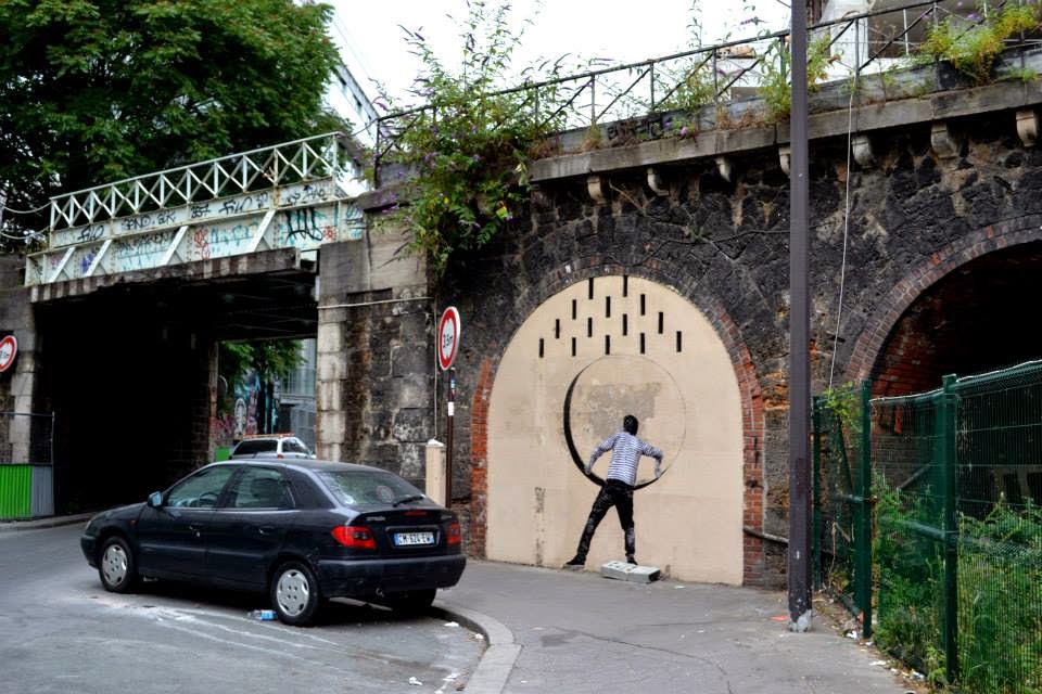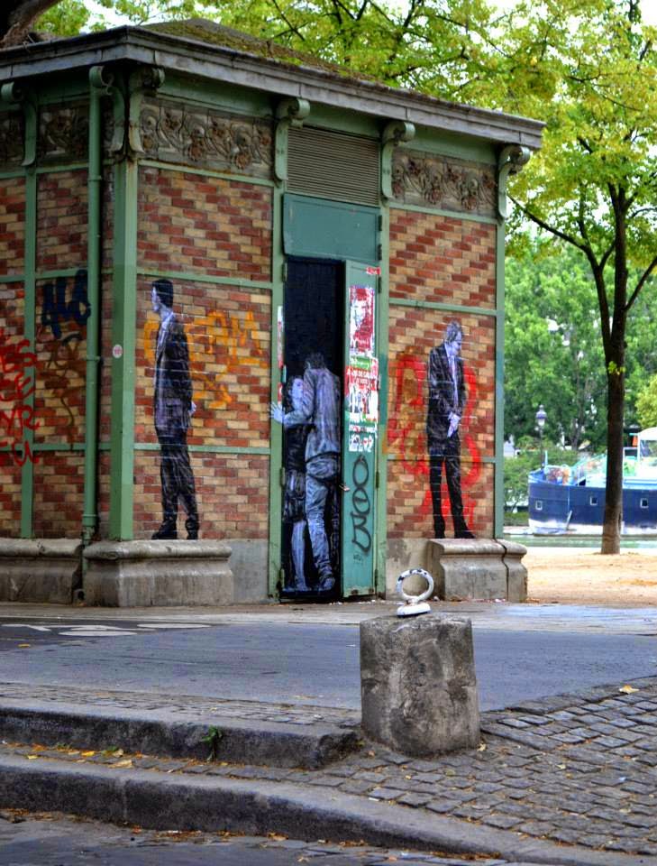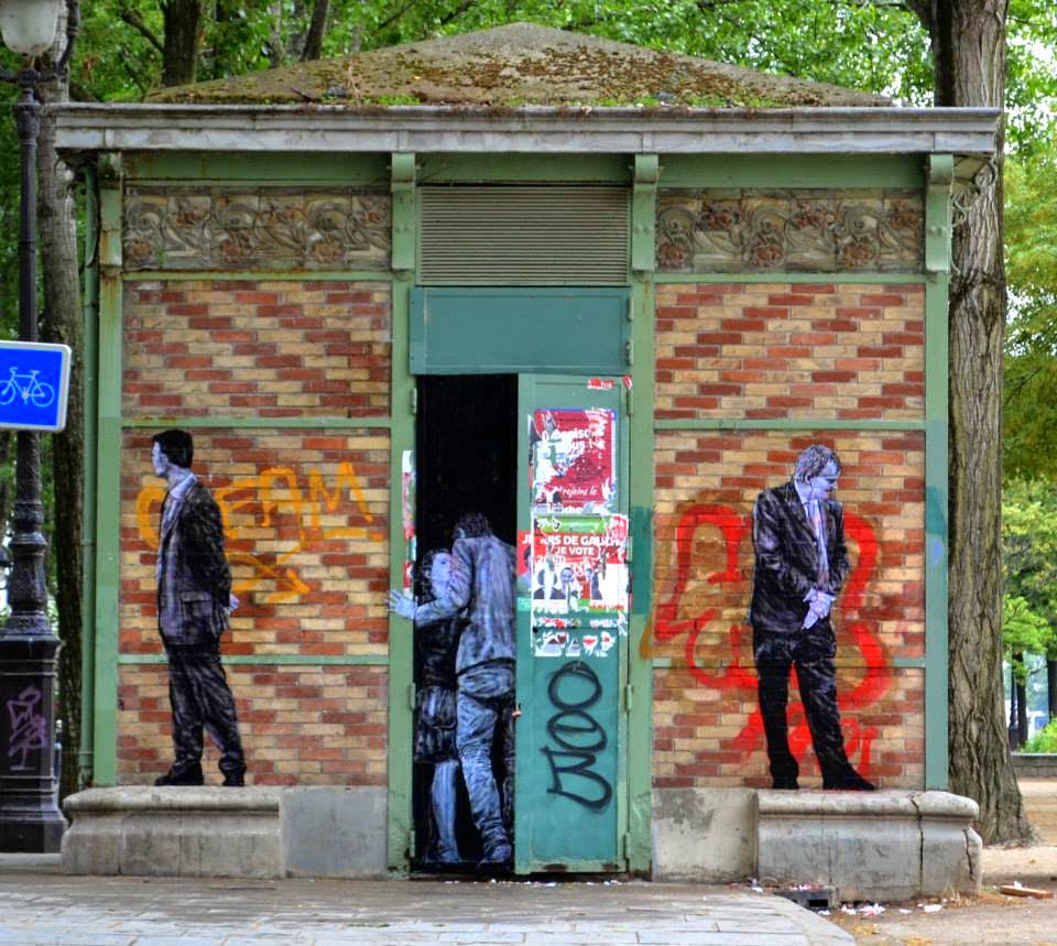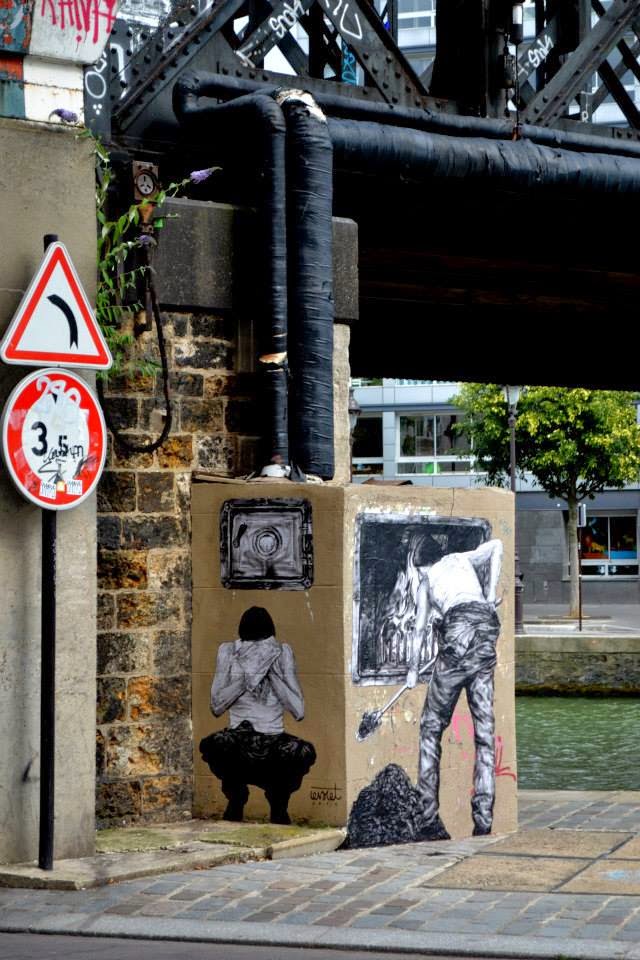 Charles Leval better known as Levalet has an especially playful style of street art. He creates life-sized wheat paste posters of people that seem to be interacting with the surrounding neighbourhood, some playful and others more mischievous.