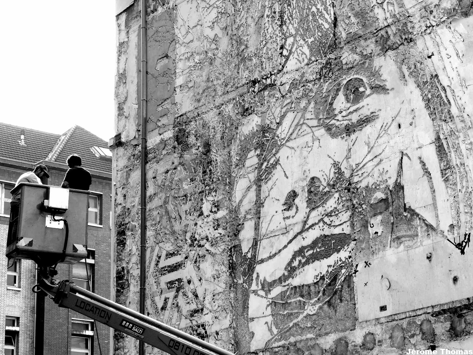 Along with Borondo or Spy, Vhils was also in Paris, France where he created a series of pieces for the recent Nuit Blanche event.