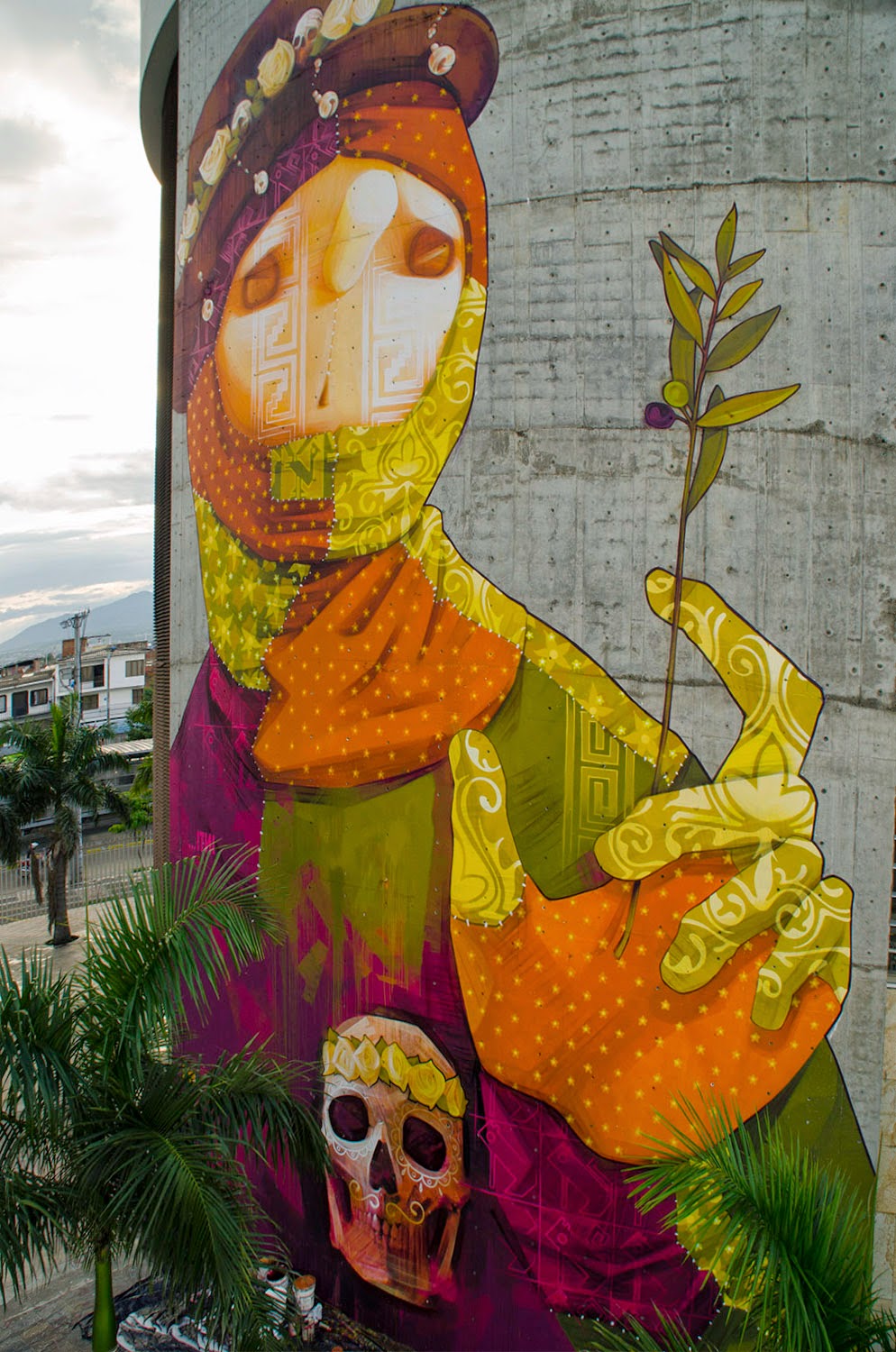 Our friend INTI recently stopped by the city of Cali in Colombia where he was invited to work on a new piece for the “Bienal Internacinoal de Muralismo y Arte Publico”.
