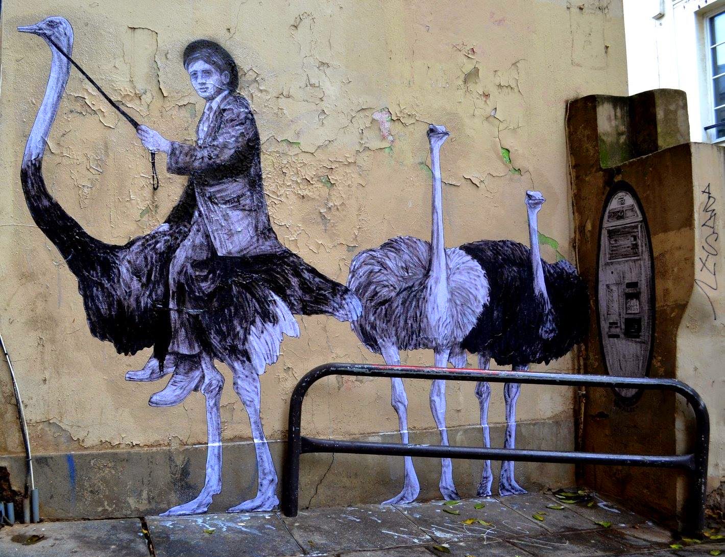Using China Ink on pasters, the French artist brought to life another surreal scene which will surely brighten the day of the local residents.