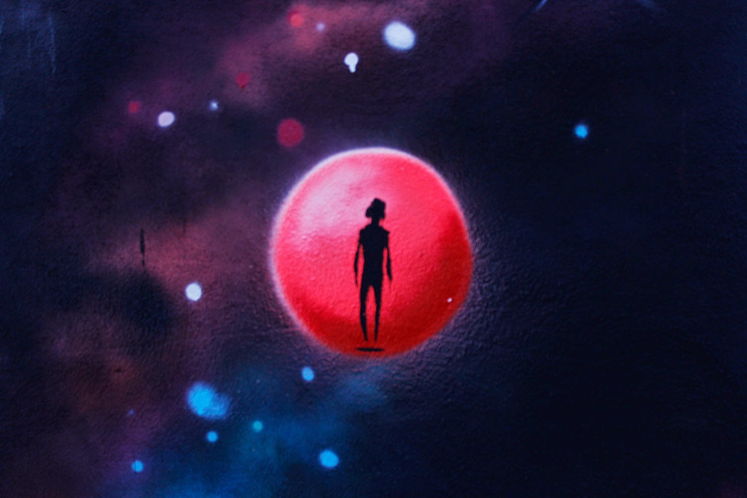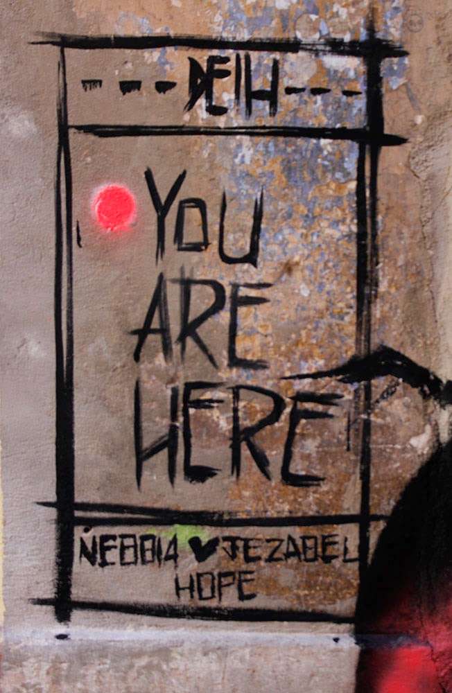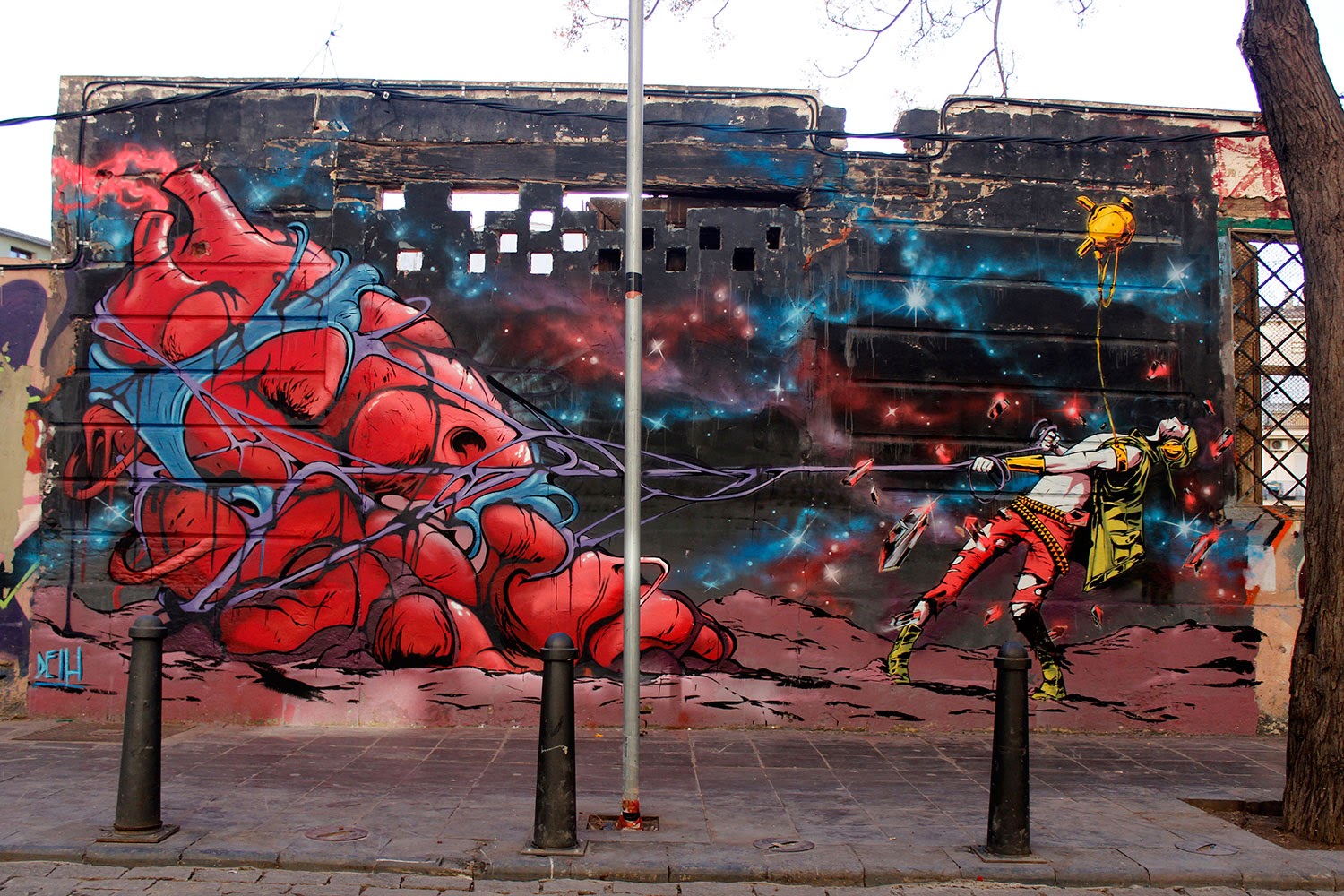 The Spanish artist quickly worked his way through these beautiful and unusual pieces which are featuring his unique comic-like imagery. The first piece shows a survivor trying to help his own heart to survive while the second piece is an advice for all the lost souls: You Are Here.