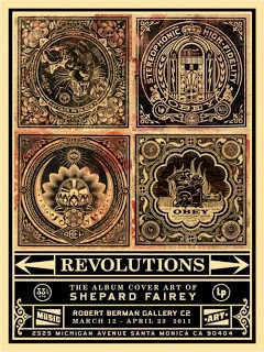 Obey Giant Art x Subliminal Projects x Robert Berman Gallery are presenting “REVOLUTIONS”, a project featuring the Album Cover Art of Shepard Fairey. On exhibition from March 12th thru April 23rd at Robert Berman’s C2 Gallery, will be over 80 pieces of Punk, Rock, New Wave, Jazz, and Hip-Hop inspired artwork based on the 12″ record cover format.