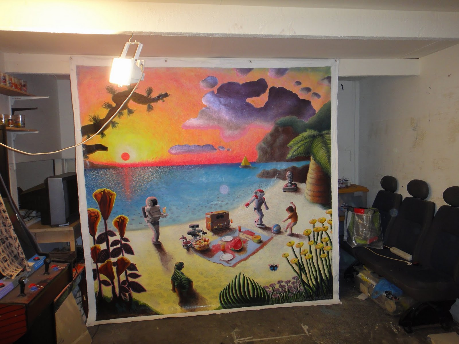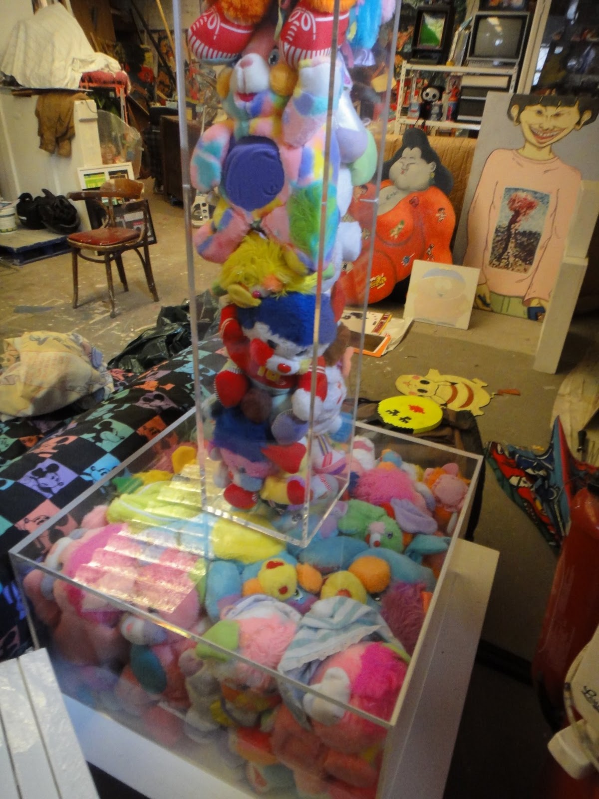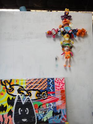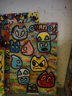 Today, San paid a visit to Chanoir in his Paris’ Studio. Chanoir has been making graf-ically inspired art featuring his famous cats for years. Chanoir was in Barcelona during the city’s graff golden era back in 2000 where he founded the “1980” Crew and started graffing with PEZ or Miss Van amongst others. The Studio itself where we got a glimpse of his inpiration is filled with toys, cartoons, mangas from the 80’s and is shared with three other creative minds, each one of them having his own very unique space. Chanoir showed us some of his latest canvas with his signature cats and also his love for a completely different medium: Sculptures.