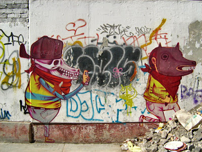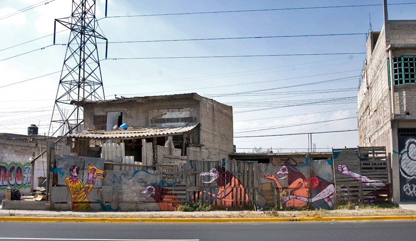 “Saner is the alter ego of Edgar Flores, an exceptionally gifted artist from Mexico City. You might recognise him as the stand-out star from our Fiesta Resistance show. His work is influenced by the traditions and colour of Mexican folklore, mysticism and muralism. His obsession with masks apparently dates from childhood experiences taking part in traditional masked dances in Oaxaca.