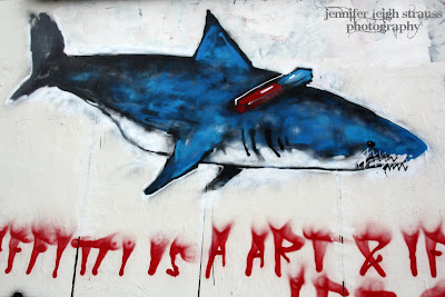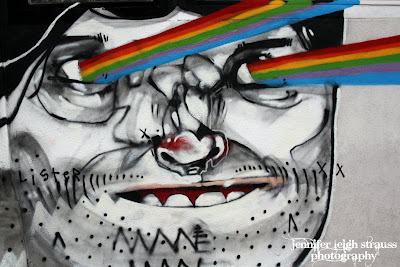 The last two photos are a piece we already covered (Here) located on the De La Barracuda wall, Melrose, however Lister went back and added the blue shark with the police car siren lights on top of it.