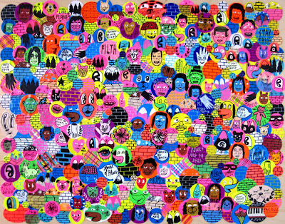 colourful work deals with gangsta rap, psychedelic dreams and snowy mountains.