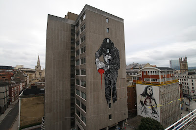 This is a 100 meter high / 8 story high banker pouring paint and it took about 4 full nights to complete.