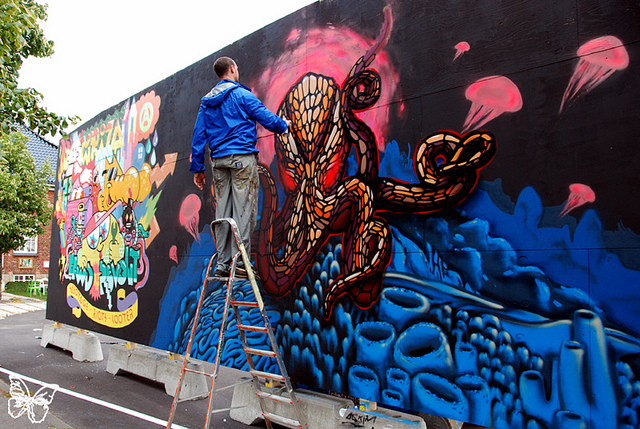 An amazing piece once again by the Belgian artist and some very nice murals by Ripo, Grito, Dreyk The Pirate, Lint, Scie, Erosie.