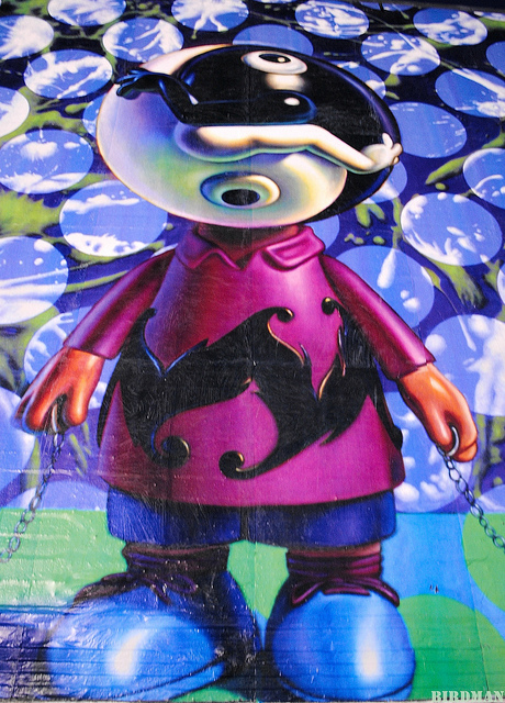 Sometime we wonder how Birdman manages to be everywhere and never miss an event in LA, we don’t have an answer but we have some very nice shots he just sent us from the newest Ron English mural for the LAFreewalls project curated by JetSetGraffiti.