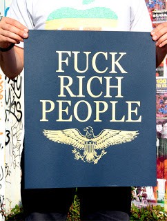 Our world economy is crumbling all around us while filthy rich dickwads sit back toasting Kristal while buying insanely expensive hookers and doing massive amounts of cocaine. Yeah, so we’re jealous. Big deal. At Wet House we always say, if you can’t join ’em, beat ’em. So, put this print up on the wall in your expensive Manhattan loft style apartment and send a strong message to all your well-to-do friends.