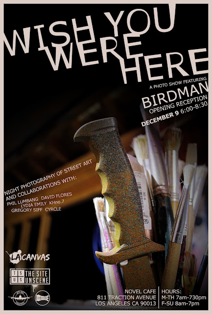 After taking pictures of gallery openings, artists and street art, our friend Bryan Mier or Birdman is stepping out from behind the camera and displaying his collection of photos for the first time at Novel Cafe in Los Angeles on December 9 at 6pm.