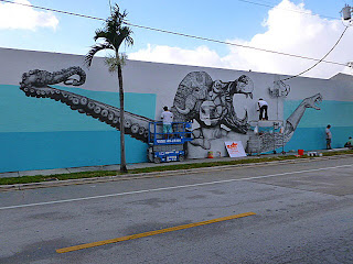 Earlier this afternoon, SAN stopped for a visit with the Puerto Rican duo LA Pandilla to check on the progress of their new mural in Miami after our first coverage last Wednesday.