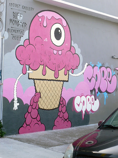 LA artist and pink lover Buff Monster travelled to Miami to grace the city with these two new murals for Art Basel 2011.