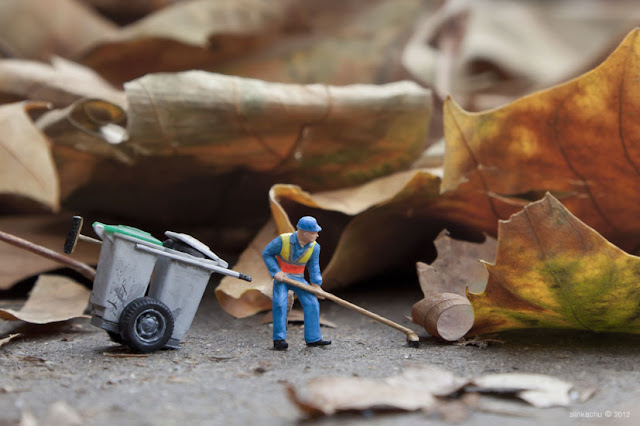 Talented street miniaturist Slinkachu is back on the streets of London with “Dead Leaves” a new installation which was taken near Somerset house at the end of last year.