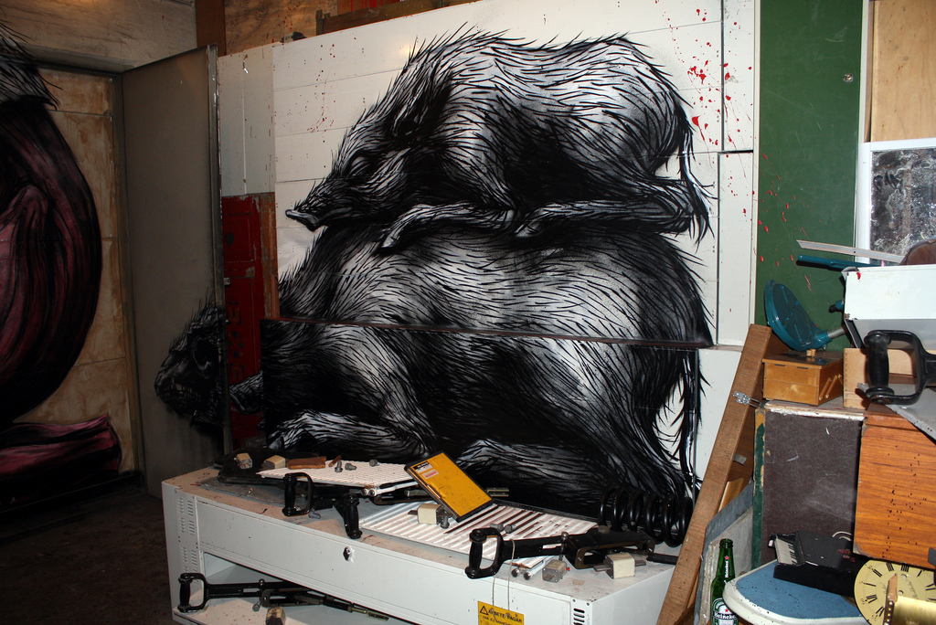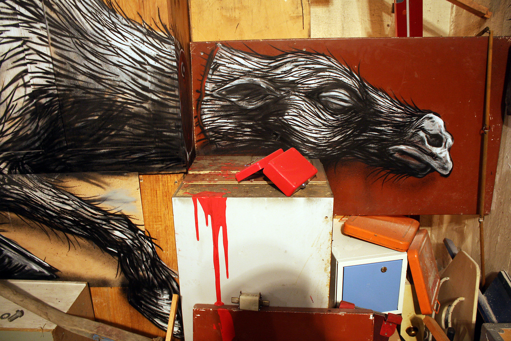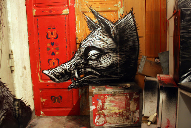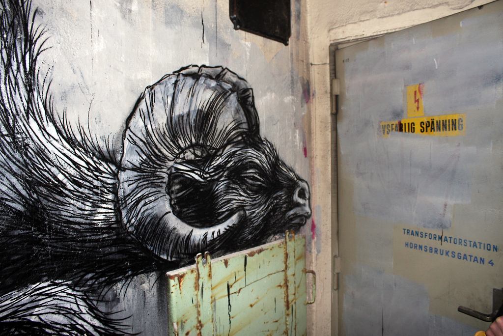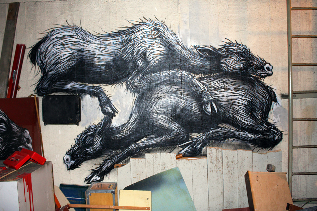 Last night, ROA unveiled an amazing new installation in an old transformer room that used to be a part of the Stocholm subway system.