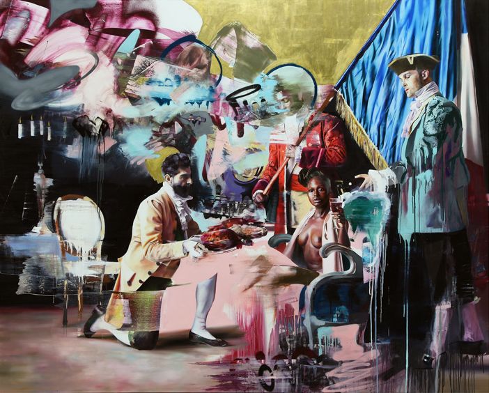 The Irish artist took his imagery in a new direction with a focus on the men in power during the 18th century in Europe. His technique is simply stunning with some crazy details on the canvases and he definitely walks a fine line between graffiti and fine art.