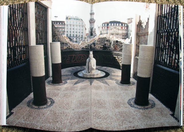 This book follows the construction and placement of a large scale site specific installation piece in Portugal by the FAILE duo. When we say ‘large’ scale, we mean a life size temple size work. The book consists mainly of photographs with a little accompanying text informing us of the nitty gritty concepts behind the realization of this epic piece of work. In fact its almost fair to say that it is not one piece of work but a collection of many works that go into the temple as a whole, from sculpture to mosaic tiling all with a faile twist.