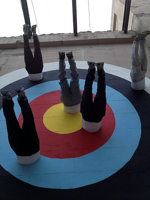 American artist Mark Jenkins arrived in town for the RVA Street Art Festival and just completed this massive installation in Virginia using some of his trademark characters as human darts.