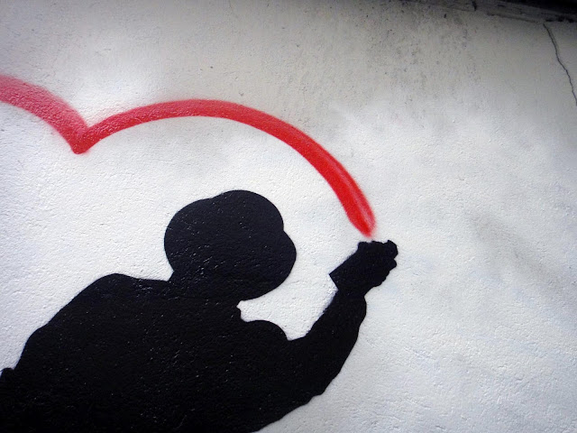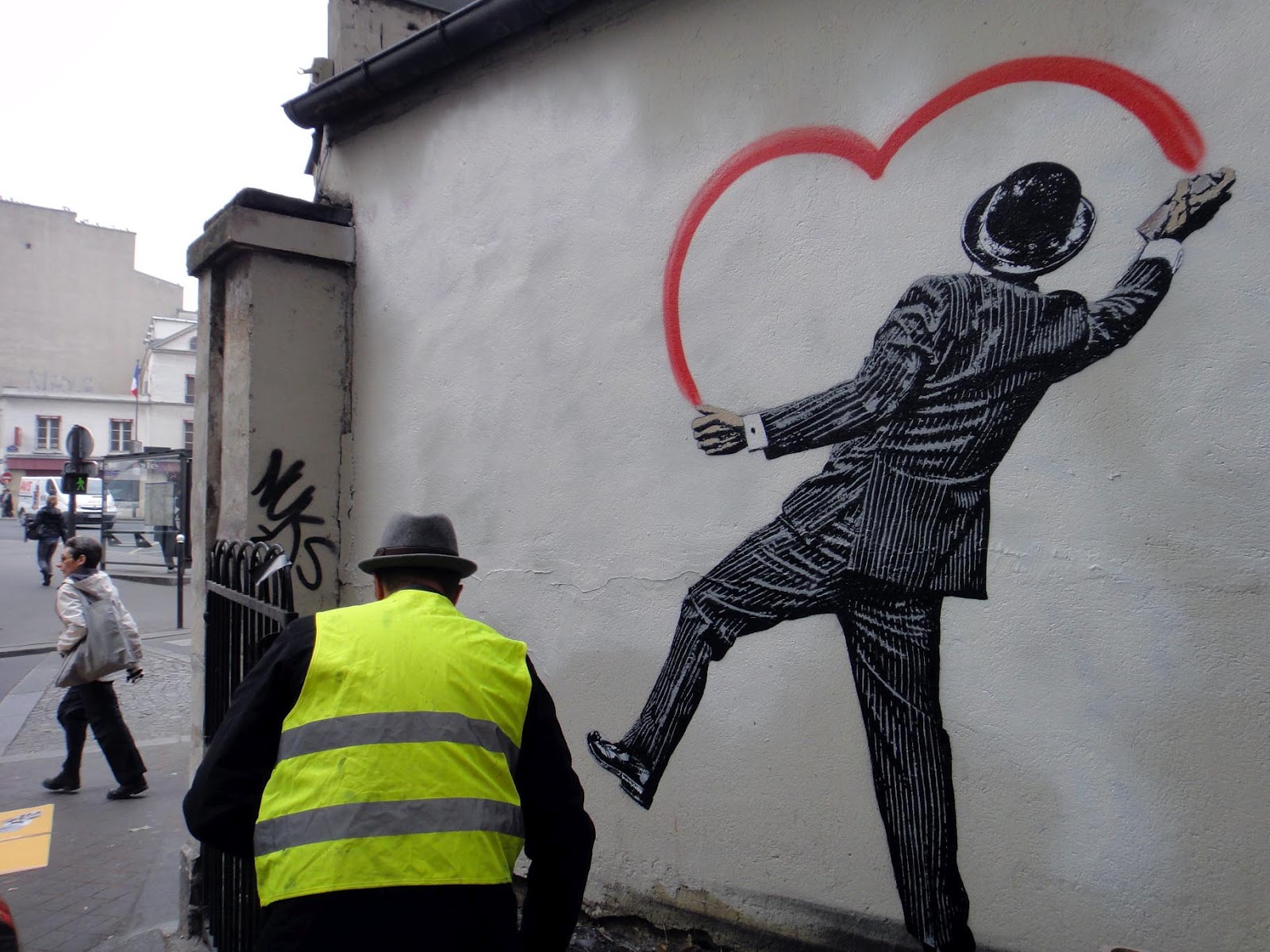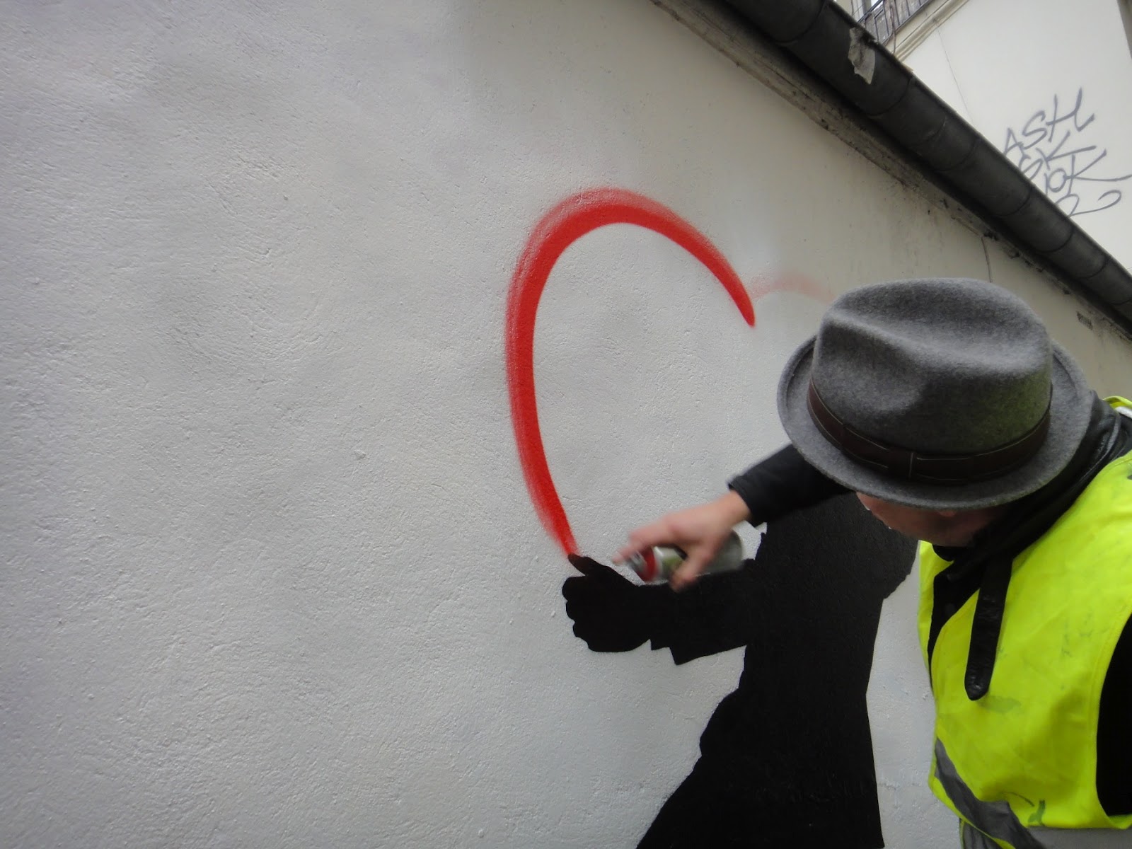 This huge “Vandal Heart” stencil was illegally painted in under an hour and as usual the British artist delivers a strong piece.