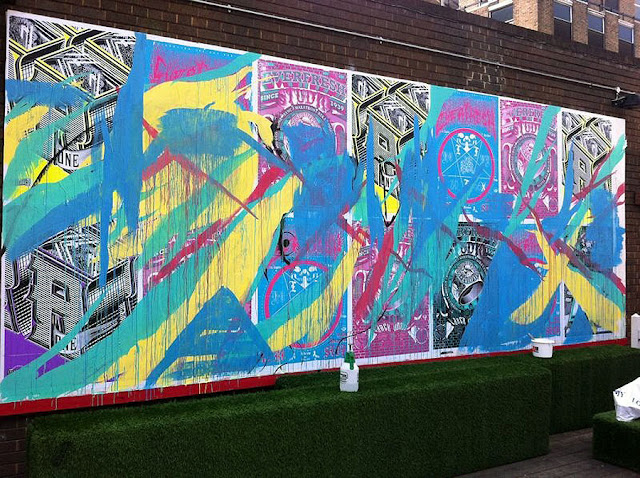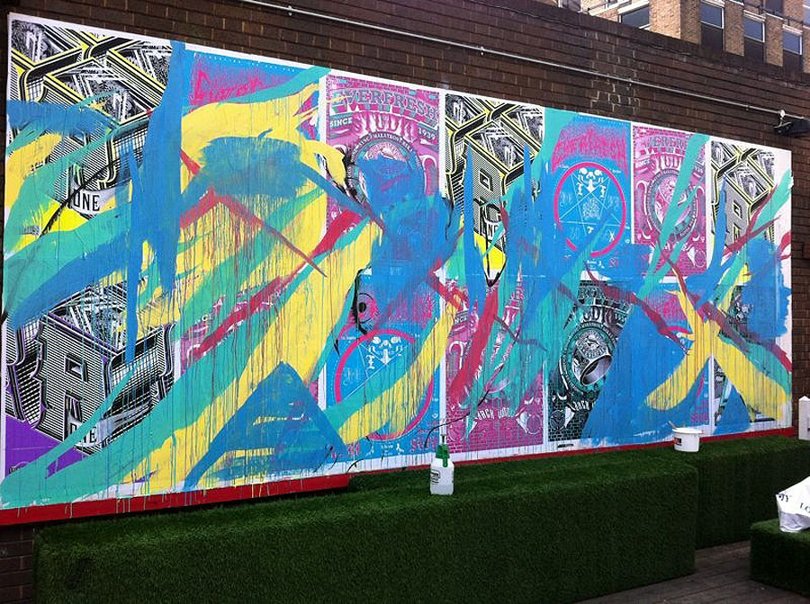 This afternoon the Australian muralist started working on this new piece at the old Truman brewery off Brick Lane.