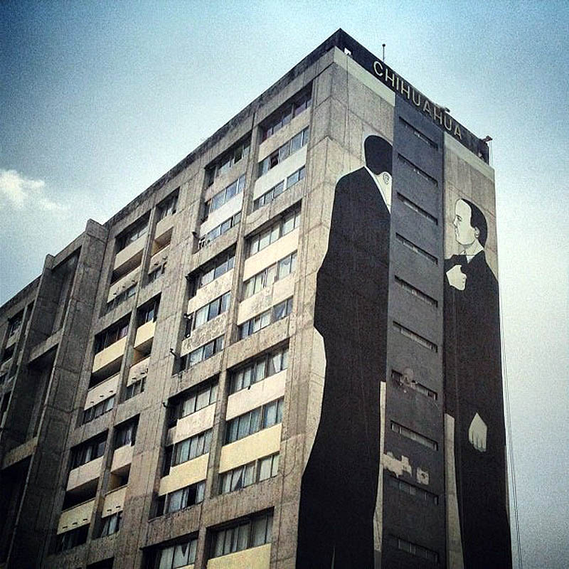 After a brilliant mural in Poland (covered), it’s yet another great large-scale mural from Spanish street renovator, Escif on the Chihuahua building in Mexico City for the All City Canvas festival.