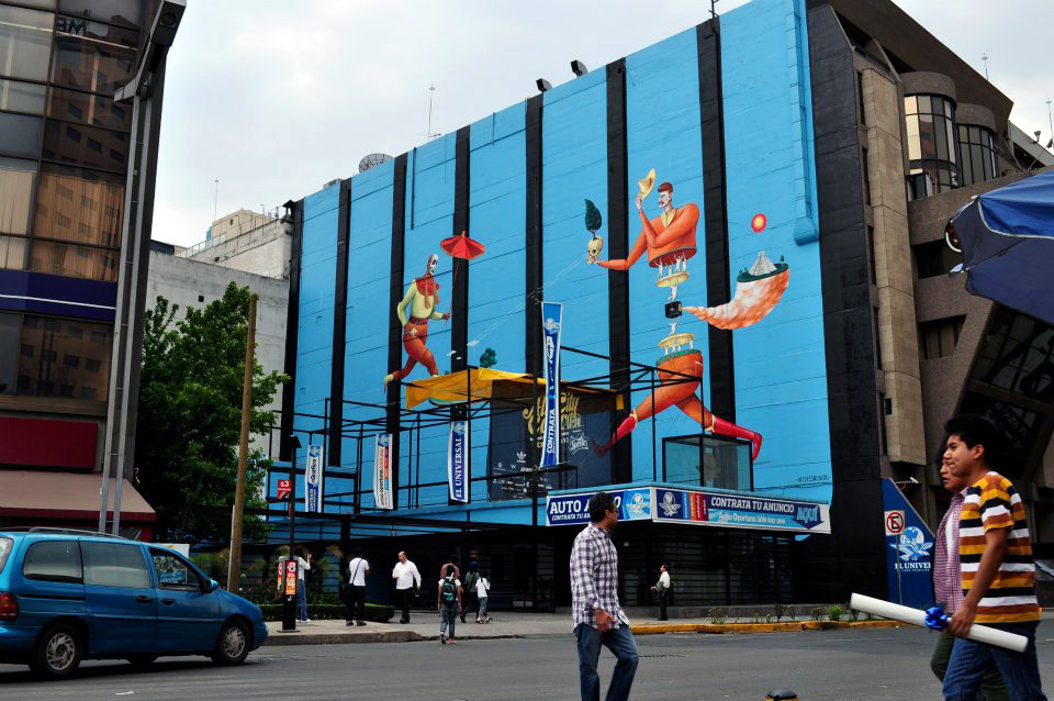 This new piece is located on the outer wall of the Universal Building @ Bucarelli 8, Colonia Centro.