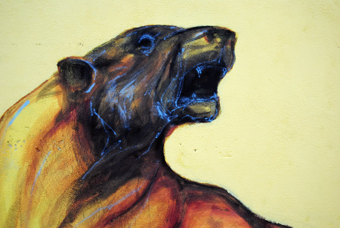 Painted using diluted spray paint with mineral spirit, featuring his signature watercolor textures, this wall was painted in just 3 hours.