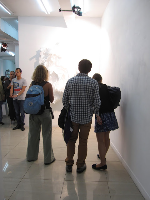 In a packed space, the attendees were in for a real discovering the Portuguese artist new body of work, portraits carved in Styrofoam, metal and paper collages or a composition created with wooden panels and windows.