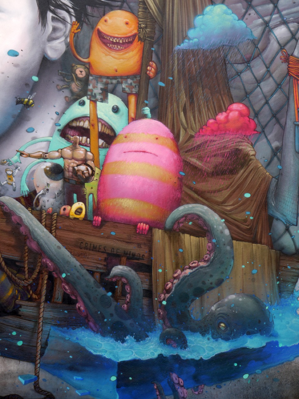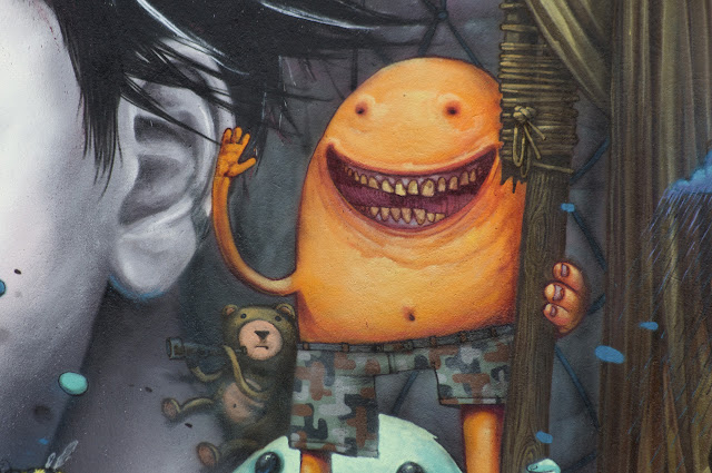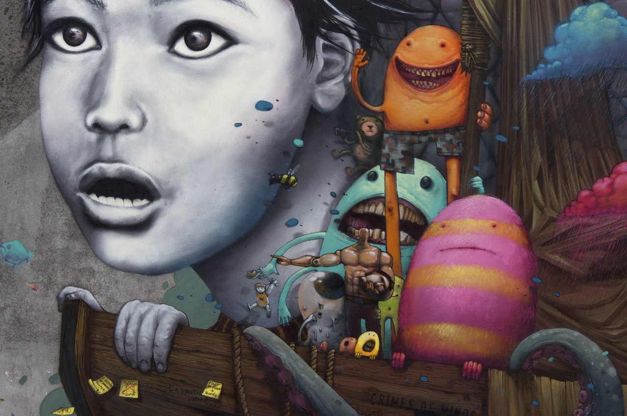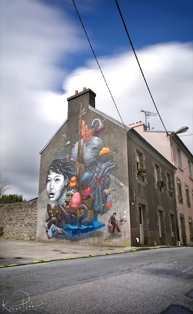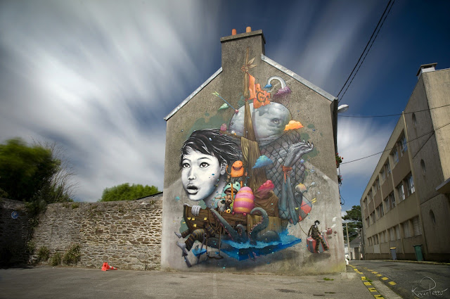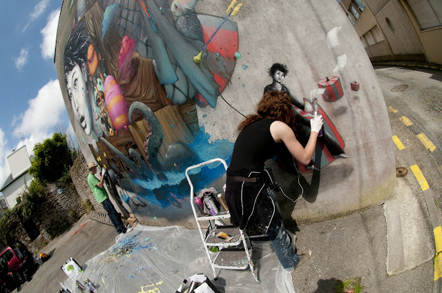 French street artists Bom.K and Liliwenn just completed this large-scale collaboration on the streets of Brest for the Crimes Of Minds project.