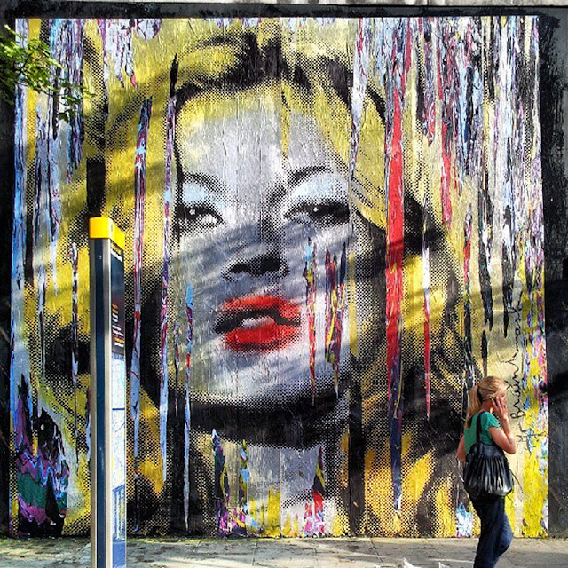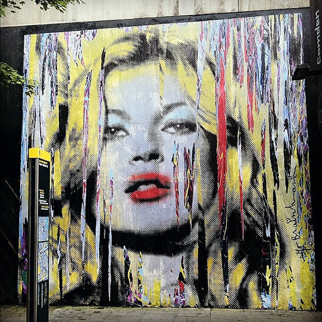 Yesterday, he spent a few hours in Central London pasting up these new images including Kate Moss on New Oxford Street.