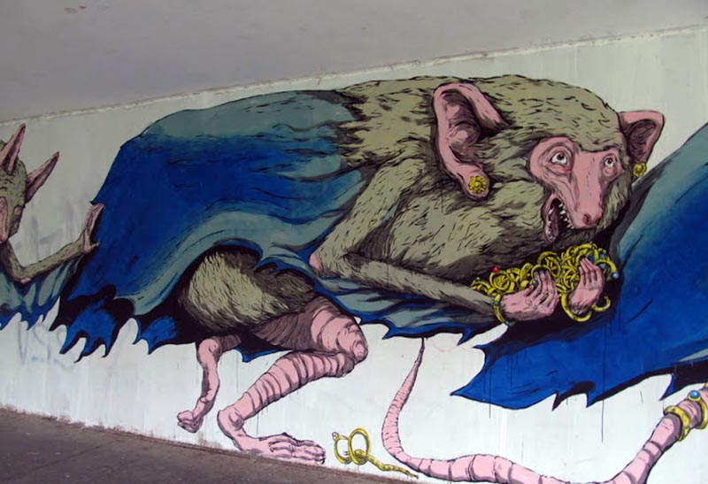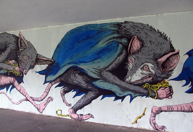 After a few days of work, the Italian artist just completed yet another brilliant mural featuring his distinctive illustrative style with the feel of old-school illustrations found in antique books, but in wonderful large scale.