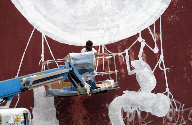 The artist has been working for the past few days on this large-scale mural which is on the verge of completion so keep your eyes peeled on SAN for the final pictures.