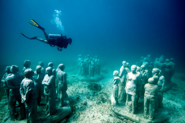 Collaborating with the renowned sculptor Jason Taylor deCaires which assisted the French artist in the depths of the Bay of Cancun, the piece was affixed on one of DeCaires’ underwater sculpture.