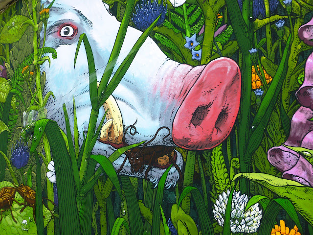 As usual with the Spanish artist, he delivers a highly imaginative and colourful new piece depicting a Galician White Boar in his local Fauna.