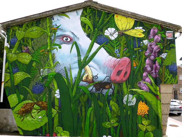 While we last heard from him in Ponte Delgada last month (covered), Liqen is now back in Spain where he just completed this brilliant new piece somewhere on the streets of Cerdedo.