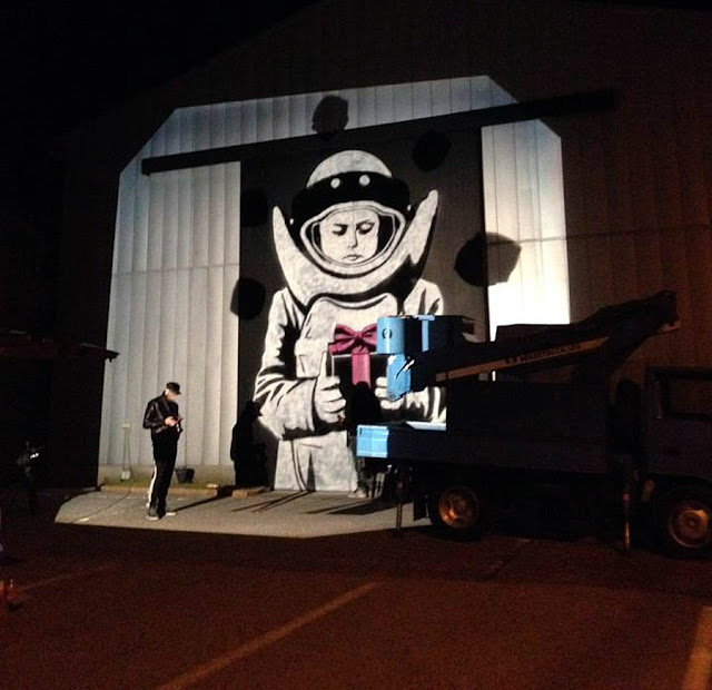 The Norwegian artist delivers a beautiful 10 meters high stencil featuring his “BombSuit” image which was recently released as a print (featured).